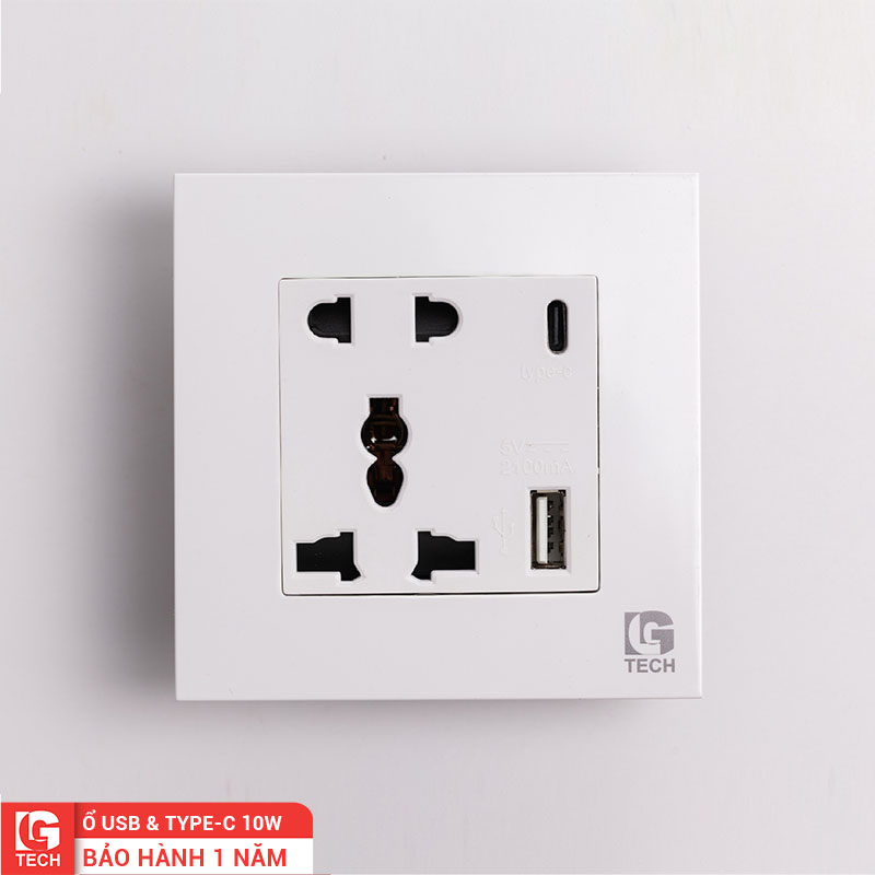 Ổ cắm điện có cổng Type C 10W và USB 5V/2.1A LG Tech LG-F21-150