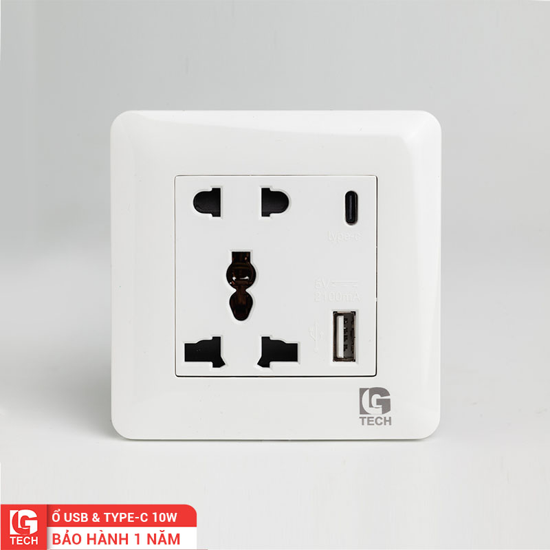 Ổ điện vuông 5 chấu có cổng sạc Type C, USB LG-TT-150